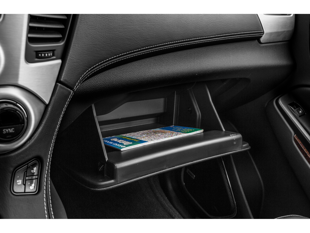 - Console, floor with storage area, cup holders, SD card slot and auxiliary jack