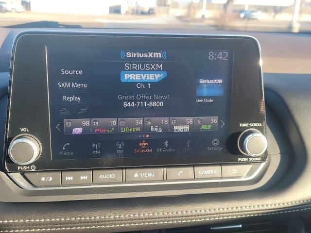 - Radio: AM/FM -inc: 6 speakers, NissanConnect featuring Apple CarPlay and Android Auto, 8" color touch screen display, Bluetooth®, WiFi hotspot and NissanConnect services powered by SiriusXM